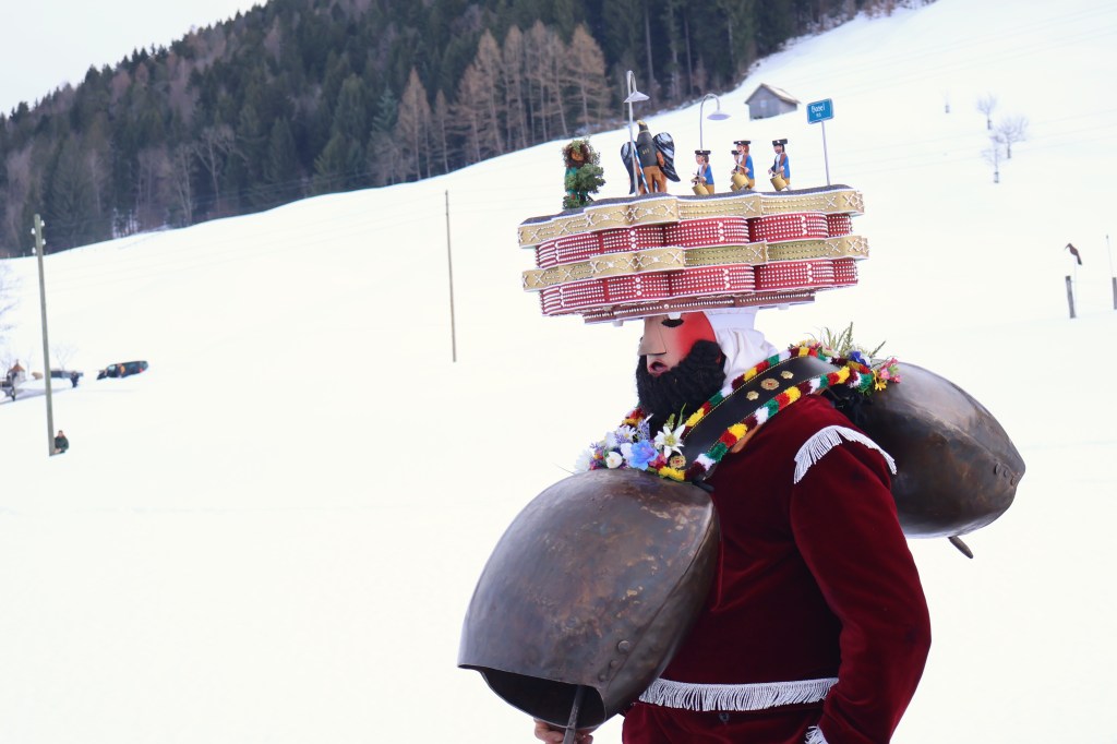 On a rarement vu des fêtes folkloriques aussi belles. Il faut imaginer le temps que doit prendre la création des coiffes et des masques. Les groupes ont surement du répéter ensemble les chansons de yodel, ou est-ce qu’ils improvisent ? Ce qui est sûr c’est que tout est vraiment raffiné, alors même qu’on est entouré de paysages agricoles et de montagne.