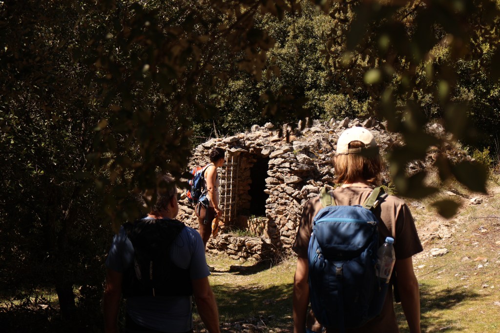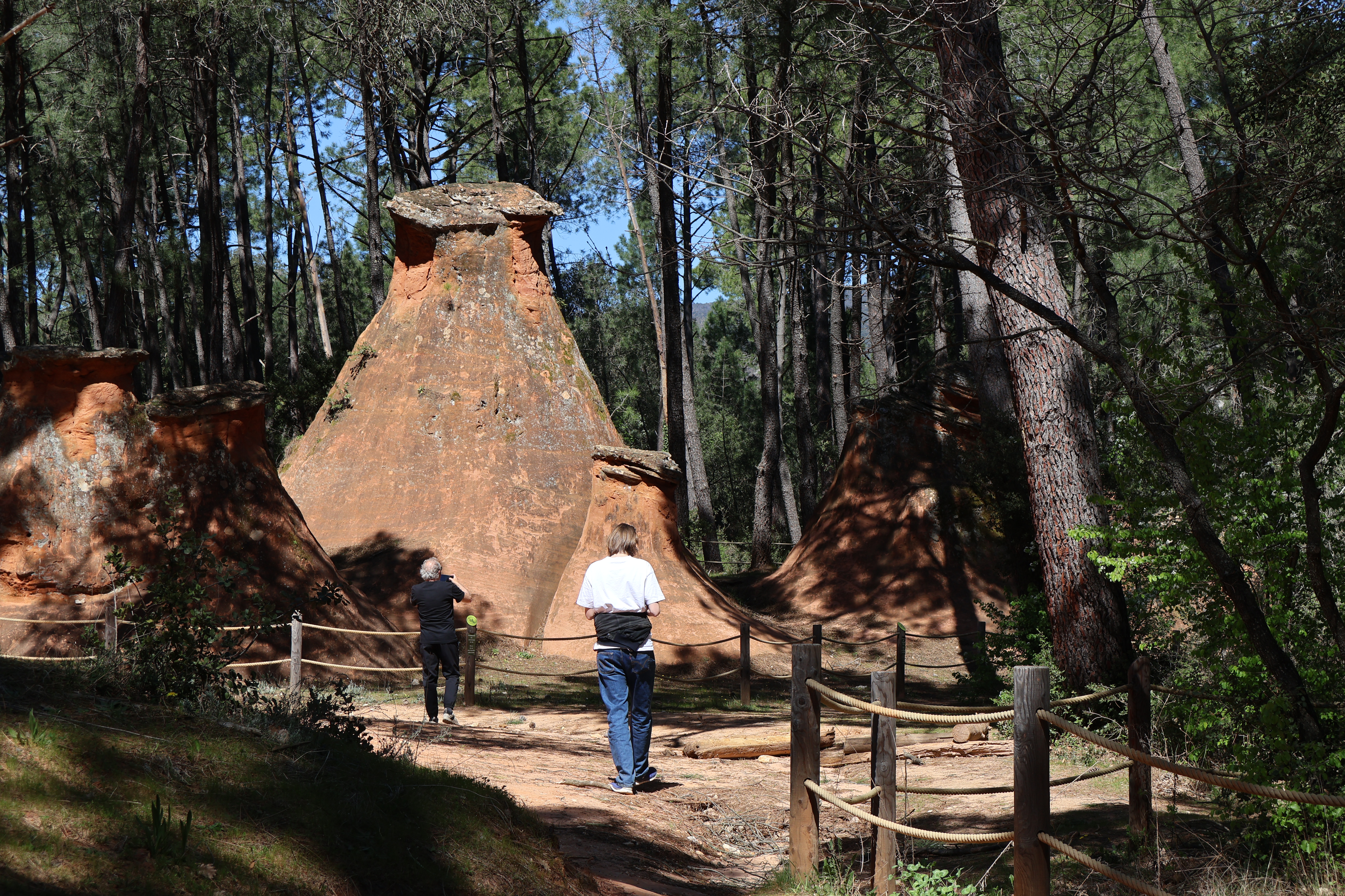 Il fait franchement chaud pour le début du mois d’Avril. On suit avec peine les indications de l’article, une vraie course d’orientation. On découvre les carrières d’ocre de Bédouin, laissées à l’abandon pour notre plus grand plaisir. Les demoiselles coiffées, des sortes de tours d’ocre recouvertes d’une pierre plate, sont le highlight de notre ballade.