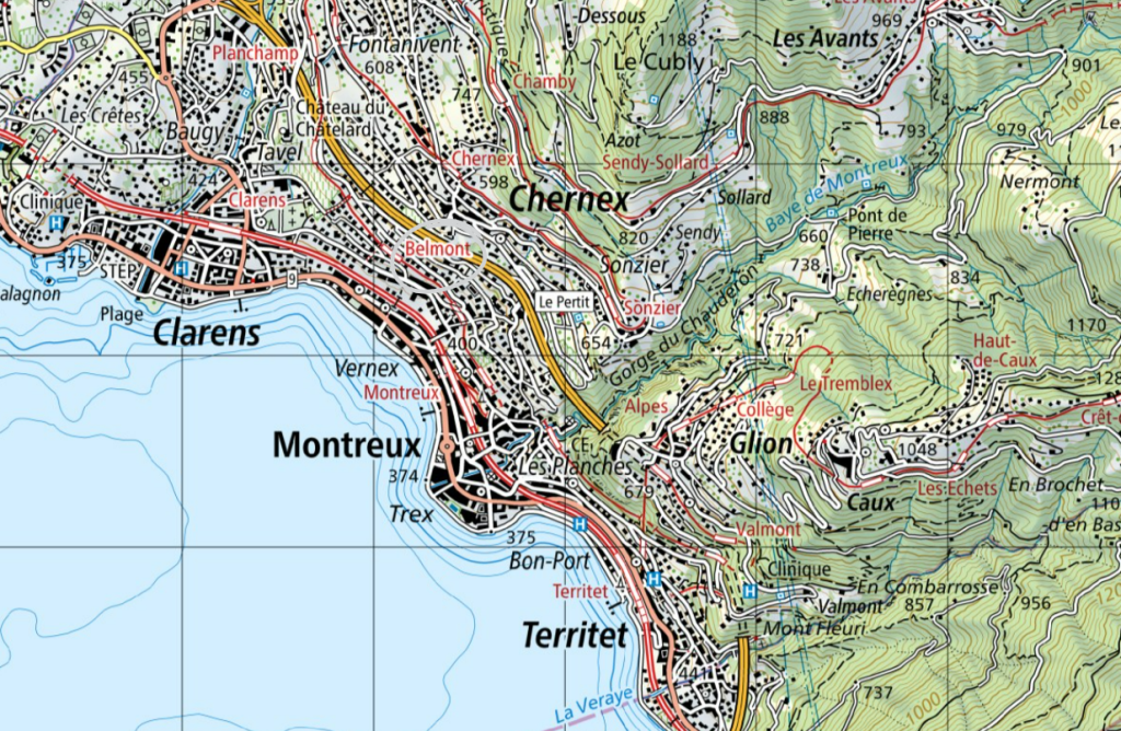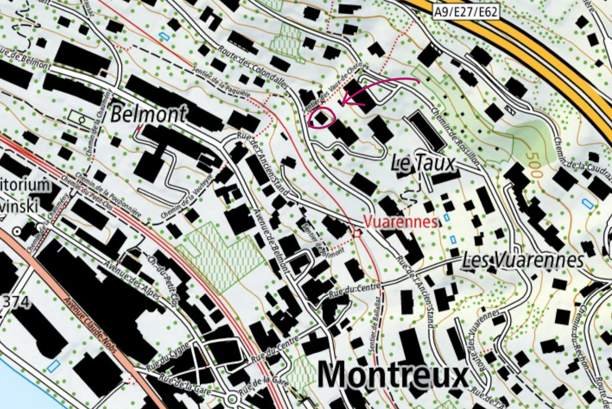 Il faudra que nous écrivions un article à part entière sur Montreux (MTX), et sa baie. Pour cette rando, on part bien sûr de la maison, qui est entre les quartiers de Belmont et du Taux, sur la route des Colondalles.