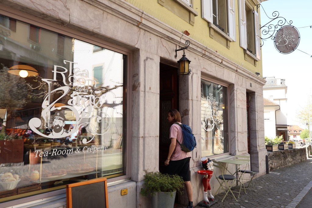 On passe dans le quartier des planches, et on fait évidemment un arrêt dans notre tea room préféré : le tea room de la Baye. Nous sommes dans le thème, puis que la Baye de Montreux, c’est la rivière qui gargouille au fond des gorges du Chauderon.