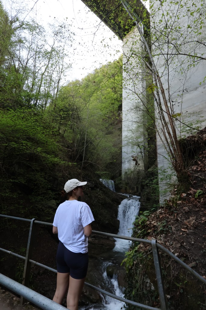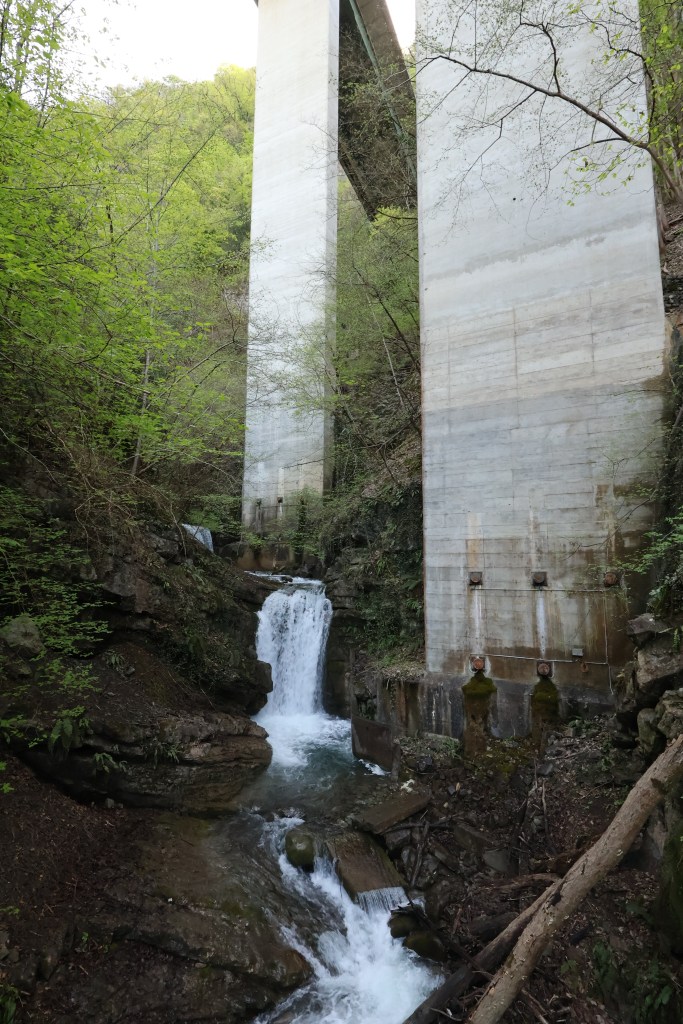 Il y a ensuite un pont avec vue sur une première cascade, juste sous le pont de l’autoroute.